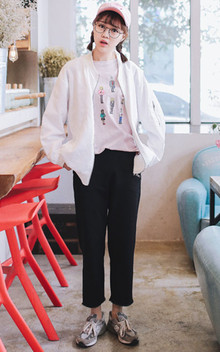 自制原创棒球服,独一无二哦!搭配流苏阔腿裤,舒适的同时还显瘦呢!