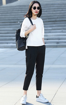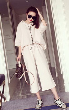 青春活力的套装,超时尚运动风,都是现在流行的元素,且加入非常流行的阔腿裤的设计,搭配简约撞色款休闲平底鞋休闲时尚