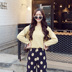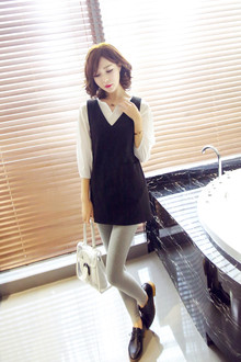 甜美精致的桃心领,拼接蕾丝绣花花边,瞬间提升优雅甜美气质。搭配马卡龙色的灯芯绒a字裙,四粒扣的设计瞬间赚足了眼球哦~