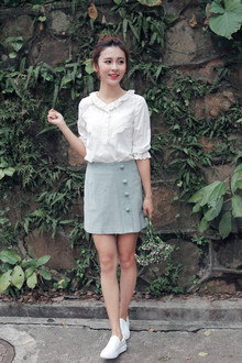 甜美小清新的衬衫,双层领子优雅迷人,百褶设计,很精致,搭配时尚的半身裙,穿一双帆布鞋,美美的出门。