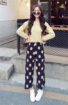 下摆开叉宽松版针织衫,搭配一条波点图案休闲裤,修饰身形,不挑身材,让你气质瞬间提升,展现出时尚的简约风格。