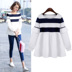 很简洁的一款娃娃衫,下摆A字遮住了腰腹部的肉肉哟~蓝白条的设计虽然简单但确有不一样的style,搭配紧身裤和休闲鞋棒棒哒