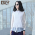 日系学院风衬衫,带着复古味道的V字领,简约大气,露出精致的锁骨,知性优雅,搭配蓝色牛仔裙,文艺范十足