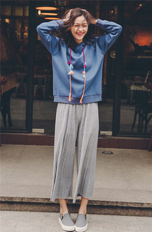 中长款抽绳宽松套头卫衣,搭配一条高腰牛奶丝阔腿裤,瞬间化身潮人,打造完美的混搭型格,展现出浓烈的复古风格。