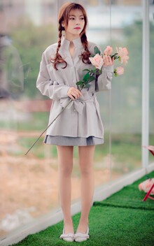 浅灰色的衬衫给人一种小猫咪的慵懒感,腰间的蝴蝶结凸显女孩的甜美,搭配百褶高腰半身裙+蝴蝶结单鞋,带给你一份独特女孩美