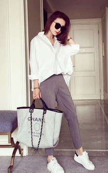衬衫是一年四季都穿不腻的单品春夏单穿,各种风格很有设计感的一款,搭配经典好搭配显瘦休闲九分裤和厚底球鞋休闲知性