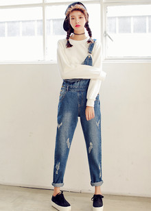 穿上背带裤顿时就觉得很青春,尤其是当米奇印花遇上随意的破洞再搭配个纯白色得tee,显得特别可爱呀~就这样去上课去春游呗~