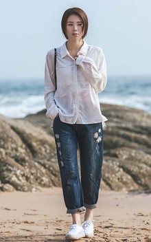 直筒纯色衬衫,精致耐看的一款白衬衫,成衣质感很出彩,搭配磨旧牛仔裤,春夏必备的搭配款,优雅文艺范,展现出了女性柔美。