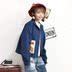 复古的蓝色外套,纯色调的衣身凸显气质,衣服上的图案十分有趣,搭配一款牛仔裤,帅气十足