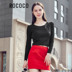 在时尚界红与黑被公认为最经典搭配组合之一,这种上红下黑搭配很常见,看似简洁干练又能给人醒目刺激感。