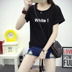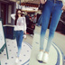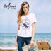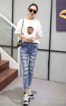 简单个性的白T恤,卡通的印花,非常的减龄,搭配时尚破洞牛仔裤,青春活力十足。