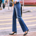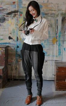 衬衫可是时尚的代表,经典的POLO翻领,搭配微喇叭裤,感觉休闲舒适慵懒随意。