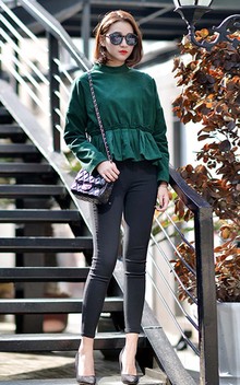 条纹元素是永恒不变的经典,很适合上班穿着的一款哦,搭配小脚裤显瘦时尚