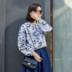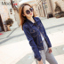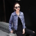 韩版时尚牛仔外套,翻领的设计,版型很好,魅力十足!搭配黑色小脚裤,走到哪里都很抢眼。