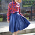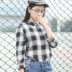 翻领棉麻格子衬衫,静雅古朴的棉麻材质,手感温软,穿起来透气舒适,搭配补丁牛仔裤,干净利落。