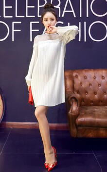 奶茶妹粉色的知性装扮,粉色无袖连衣裙腰部修身立体剪裁,展现苗条的身材。粉粉的衬托出白皙的肌肤,给人淑女优雅的感觉!