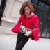 优雅的套头雪纺衫,喇叭袖的设计,修饰手臂的线条,搭配休闲长裤,尽显女人的OL风范儿!