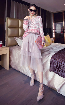 很有魅力的一款套头毛衣,舒适的面料,穿着效果极佳,搭配甜美的蛋糕裙,层次感十足!散发女人的优雅风情。