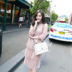 超级粉嫩少女心的风衣外套,经典双排扣,随性中长款,非常的洋气有范,穿着超美呢,内搭背心+牛仔短裤,尽显青春魅力