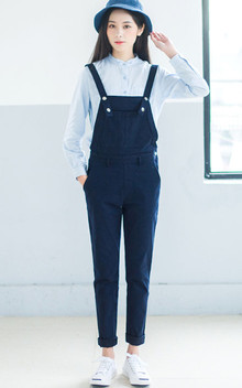 背带裤学院风小清新设计上衣随意搭配一件白色T恤都风采照人哟,这个季节搭配稍微厚点的白卫衣正好呐~