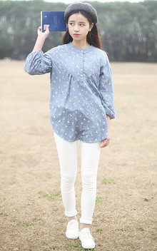 整款小碎花衬衫非常的清新可爱,适合淑女甜美风的你哦!搭配补丁牛仔裤,特别好看哦~~~
