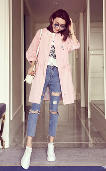 带有运动街头风的短夹克,以塑形拉风为基本的长款风衣都可以列入时尚行列,搭配凹造型必备破洞牛仔裤和贝壳鞋很时尚
