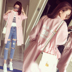 一款适合春游穿着的衣物,长款的衬衫,宽松廓形,表层的小兔子印花,萌趣可爱,搭配白色打底裤,显瘦,文艺感足。