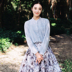 小立领的雪纺衬衫,麋鹿的印花设计清新文艺,搭配蕾丝半身裙,淡雅恬静。