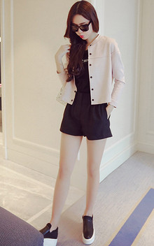 春季新款短外套,既保暖又立体有型,粉红色减龄嫩肤,绝对是不错的单品,搭配一条黑色短裤,休闲范十足