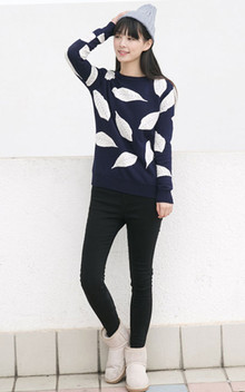 套头针织衫,树叶精致针织提花图案,版型舒适不挑身材,搭配修身打底裤,明朗清新。