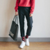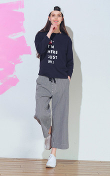 时尚长袖T恤,潮流的字母印花,休闲大气,穿着很舒适,搭配宽松的阔腿裤,条纹装饰,经典百搭。