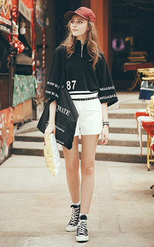 宽宽松松,尽显随意慵懒感的卫衣,点缀字母装饰,非常的个性潮范,尽显街头休闲风,搭配高腰阔腿皮短裤,街头范十足