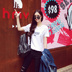 经典百搭宽松t恤,不挑身材,搭配淡蓝色牛仔裙,显瘦的同时还清爽大方哦。