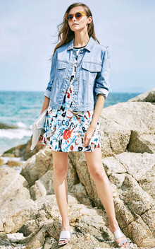 新款复古牛仔外套,优质面料,不易皱透气性好,简约又时尚,内搭一款印花连衣裙,时髦又耐看