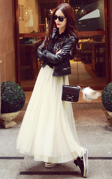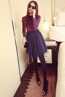 甜美迷人的衬衫,波点的装饰,可爱俏皮,上身很不错,搭配网纱透视半身裙,女人味十足!