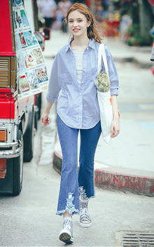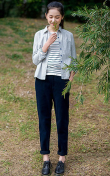 每个女孩的衣橱里,怎么能容忍缺少一件牛仔衬衫,搭配休闲裤,很有文艺感哦!
