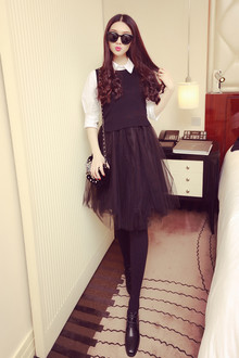 针织+网纱连衣裙,搭配水钻鞋好穿时尚,时尚洋气,超级显瘦!