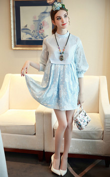 复古灯笼袖娃娃款连衣裙,重工提花,凹凸立体的质感,优美大气的纹理,搭配尖头高跟鞋,气质优雅范!