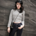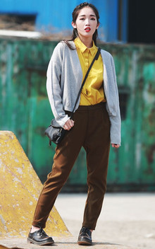 百搭灰色毛衫不挑款式不挑颜色,羊毛面料更为舒适,内搭纯色衬衫,下面配小脚裤,给人沉稳、安静的气质。