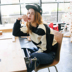 军绿色短款的工装外套帅气有型,搭配黑色条纹针织衫和蕾丝纱裙,简单大气,个性有范儿。满满的都是气场。