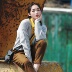 洁白的布料里加了淡淡的格子,这个季节怎么少了格子衬衫,再配上条哈伦裤,时尚优雅,不容错过。
