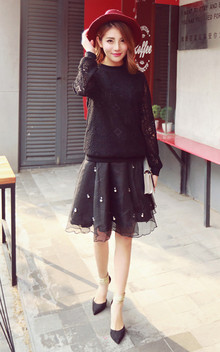 针织衫+纱裙两件套呢,可以分开搭配也可以一起哟,粉粉的颜色,特别的修身,下身蓬蓬的很有公主的感觉哟,搭配高跟鞋很仙呀~