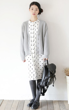 浅雾灰日系开衫,版型宽松的短版,显瘦不挑人,内搭连衣裙很美哟!