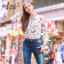 韩版印花套头衬衫,面料柔软手感舒适,透气性好,搭配蓝色牛仔裤,时髦又有型