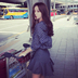 很不错的一款牛仔外套,后部弧形下摆,上身很干练,内搭纯棉T恤,搭配一条黑色小脚裤,韩范儿十足!