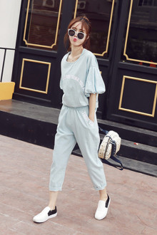 超级喜欢这种马卡龙色,出去拍照也超级好看的哦~字母印花潮流时髦,裤脚卷边穿起来更休闲哦~
