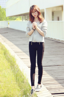 紧身裤与乐福鞋的搭配,上面随便搭配一件T恤或者毛衣都可以,很休闲噢。