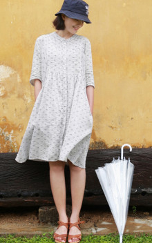 优雅纯净的一条连衣裙,淡蓝色拼接白色双袖,清爽优雅,很美很提气,搭配尖头平底鞋,时尚显高挑,女人味十足
