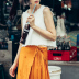 不规则牛仔毛边背心,宽宽松松,非常的舒适个性,搭配文艺感十足的百褶半身裙,走在街头让你回头率大增,非常随性有范的搭配。