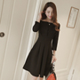弹力又修身的露肩t恤,搭配性感包臀半身裙,简约又气质~多色可选~把衣脚放入裙子里更气质哦~